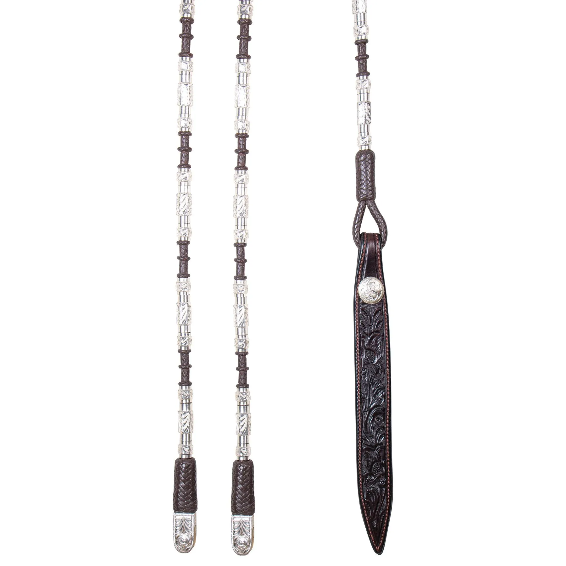 Perfectly balanced to form a stunning drape with little movement. Made of exceptional quality and features our exclusive, patented direct contact bit ends, and hand-tooled sterling silver plate conchos.