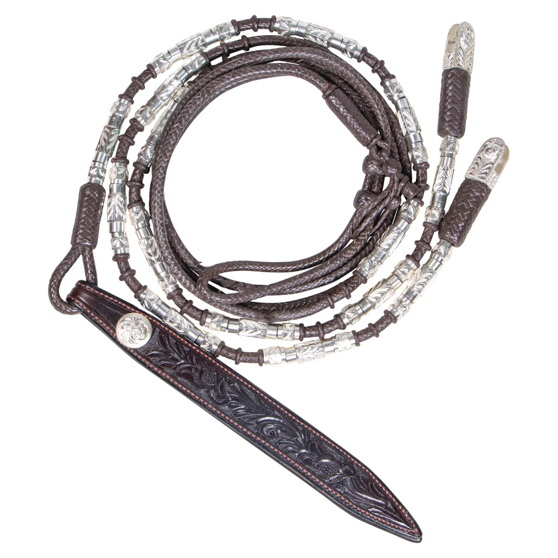 - Popper is beautifully hand tooled with a sterling silver plate concho