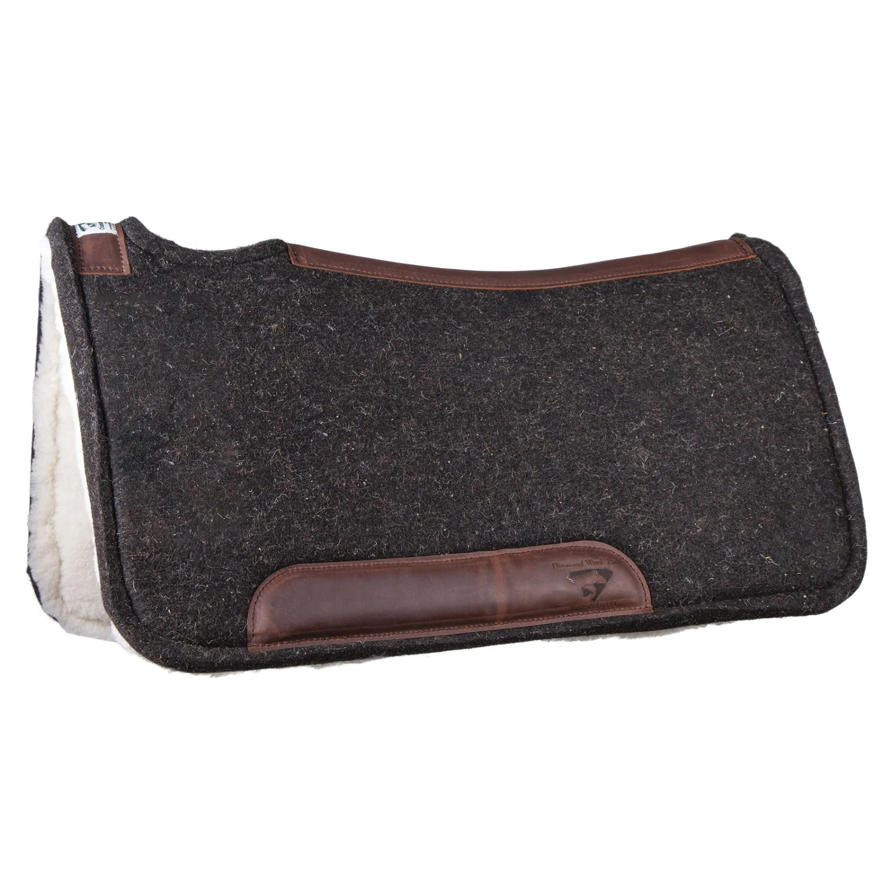 The Diamond Wool Contoured Pleasure Pad is a contoured wool felt pad that combines Diamond Wool’s “Ranch Tough” wool felt with a Merino wool fleece bottom for ultimate comfort and durability. This pad is designed with a 1″ thick material that offers great support under your saddle. It features a contoured spine for an optimum fit along your horse’s back and a wither relief notch for extra comfort. The pad is reinforced with dressed leather and includes wear leathers on both sides, making it a reliable choice for all your riding needs.