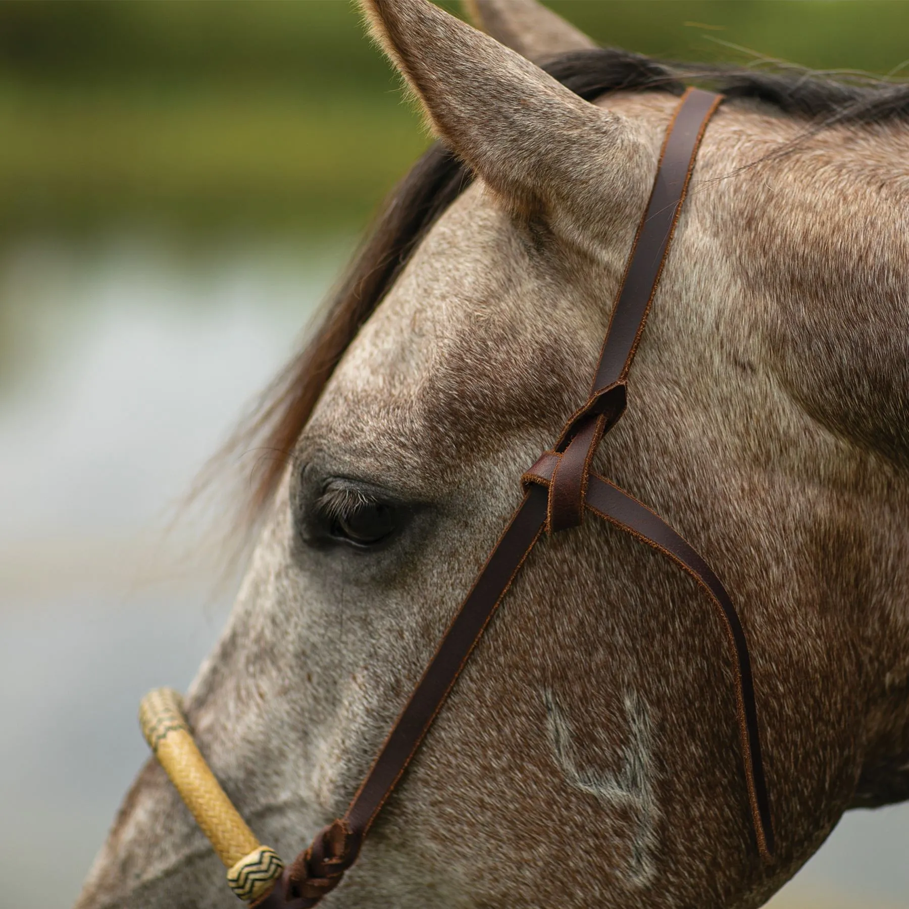 This well-made rawhide and leather bosal offers functionality with a classic design