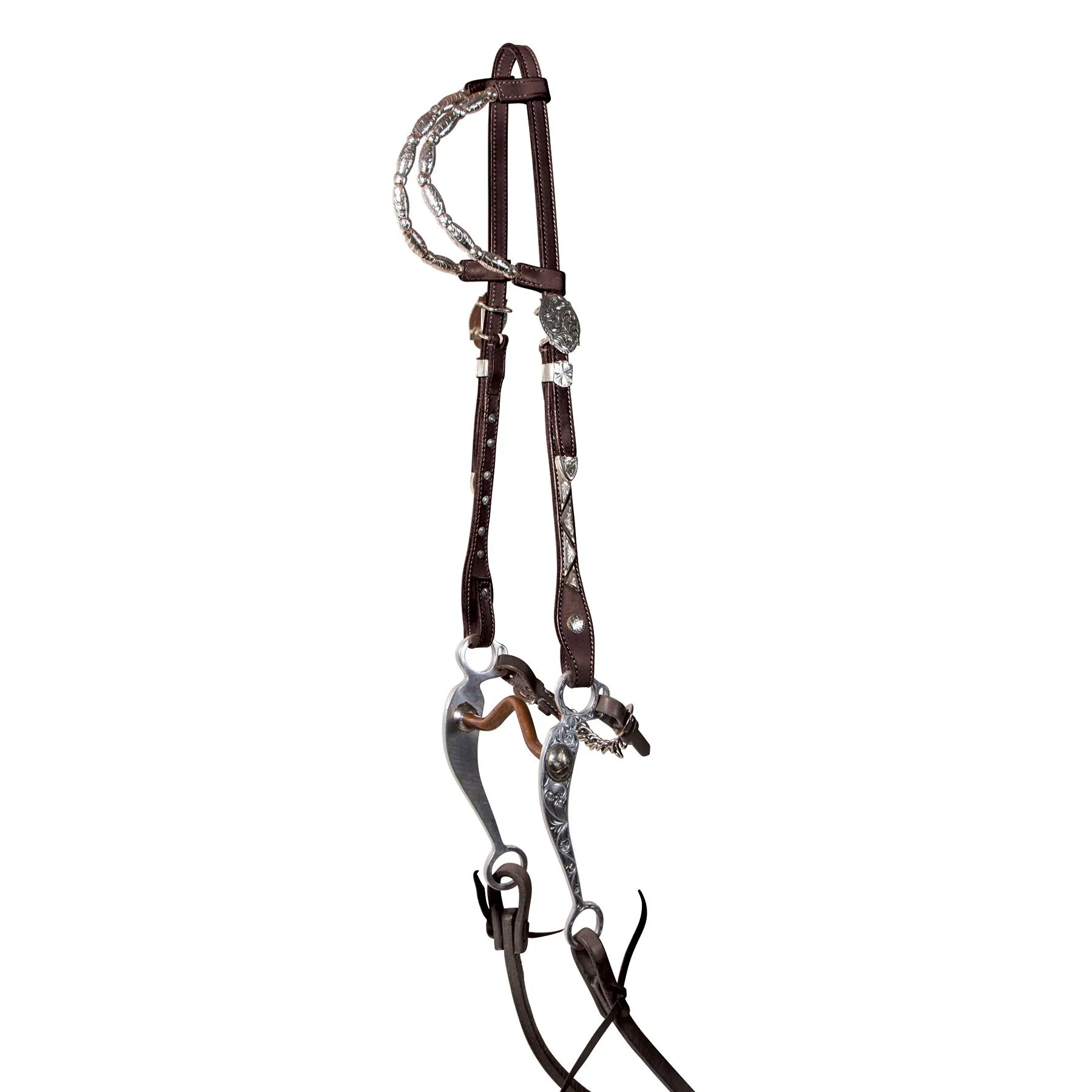 An affordable entry level headstall at a great price point. Soft, supple European leather with an already broken in feel. Doubled and stitched for added strength with hand rubbed edges. Double adjustable crown adjusts from 34 1/2″ – 41″ bit end to bit end, for a perfect fit.