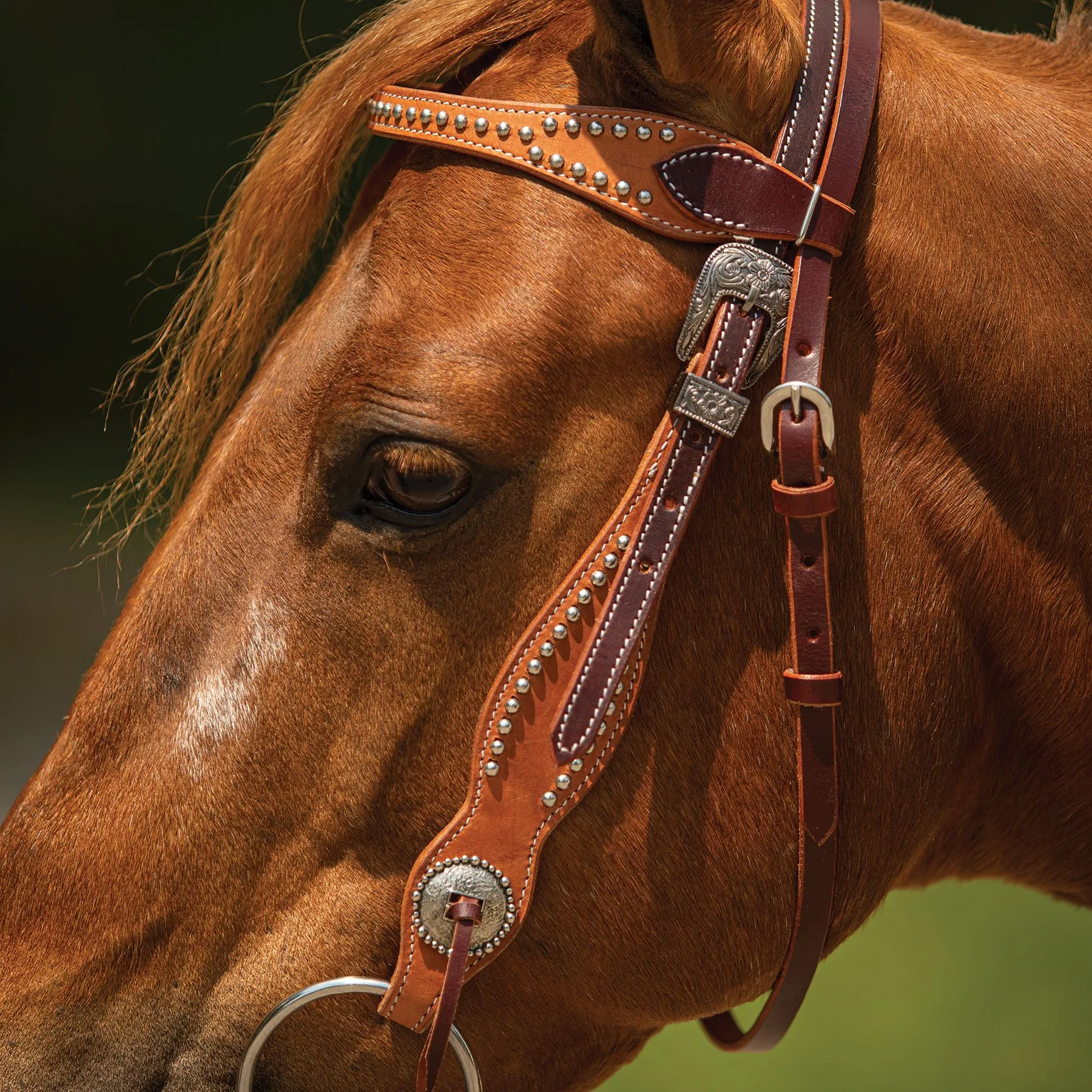 - With a two-tone studded browband and throatlatch, this is a great headstall for snaffle bits from the casual rider to the professional trainer