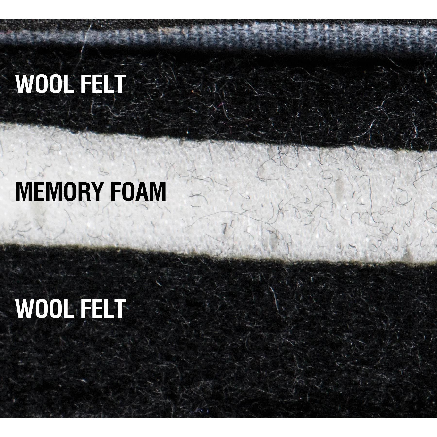 The Dura-Tech® Contour Memory Foam Western Saddle Pad is a high-quality pad that provides substantial cushioning and alleviates soreness. This 1″ thick pad features a 1/4″ memory foam core that absorbs shock and conforms to your horse’s back, dispersing pressure evenly across the back. The dense wool felt surrounding the foam core wicks moisture away from the horse’s body, keeping the back cool. The contoured design with a wither cutout relieves pressure on the spine and ensures a better fit. Extended-wear leathers resist wear and tear in high-stress areas, while the girth cutout beneath the wear leathers provides a more secure fit.