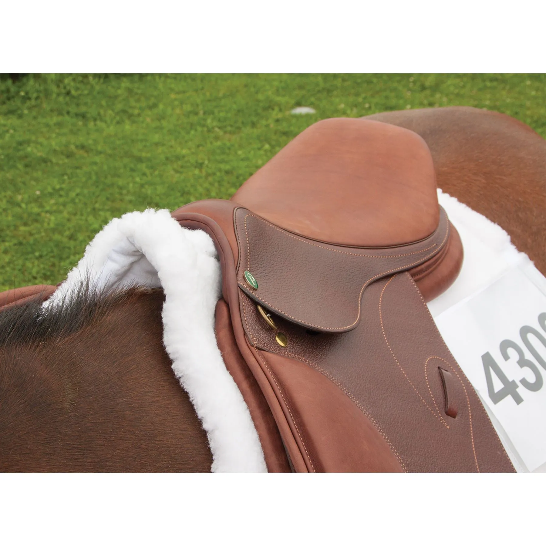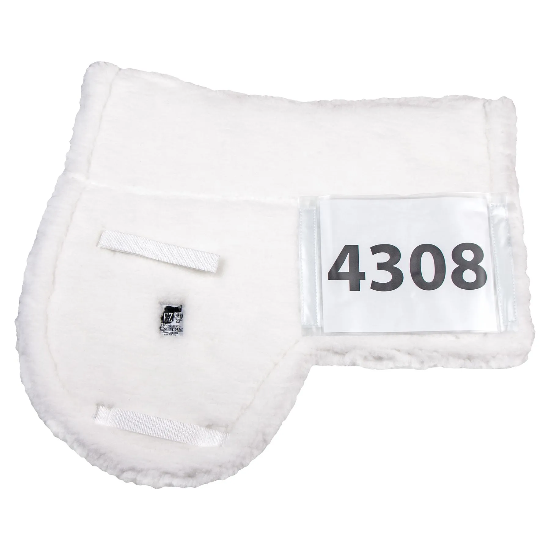The Dura-Tech® E-Z View® Wither Relief Saddle Pad is an innovative pad designed with the comfort of your horse in mind. This pad features all the great aspects of the traditional E-Z View® pad but also includes a raised, shaped wither designed to reduce pressure on higher withered horses. It’s crafted from the finest luxurious hypo-allergenic synthetic white fleece and has a quilted 100% brushed cotton non-slip bottom. This pad securely holds 3 or 4-digit numbers in plastic hook and loop closure pockets, with an additional opening along the spine for your gel insert or riser pad.