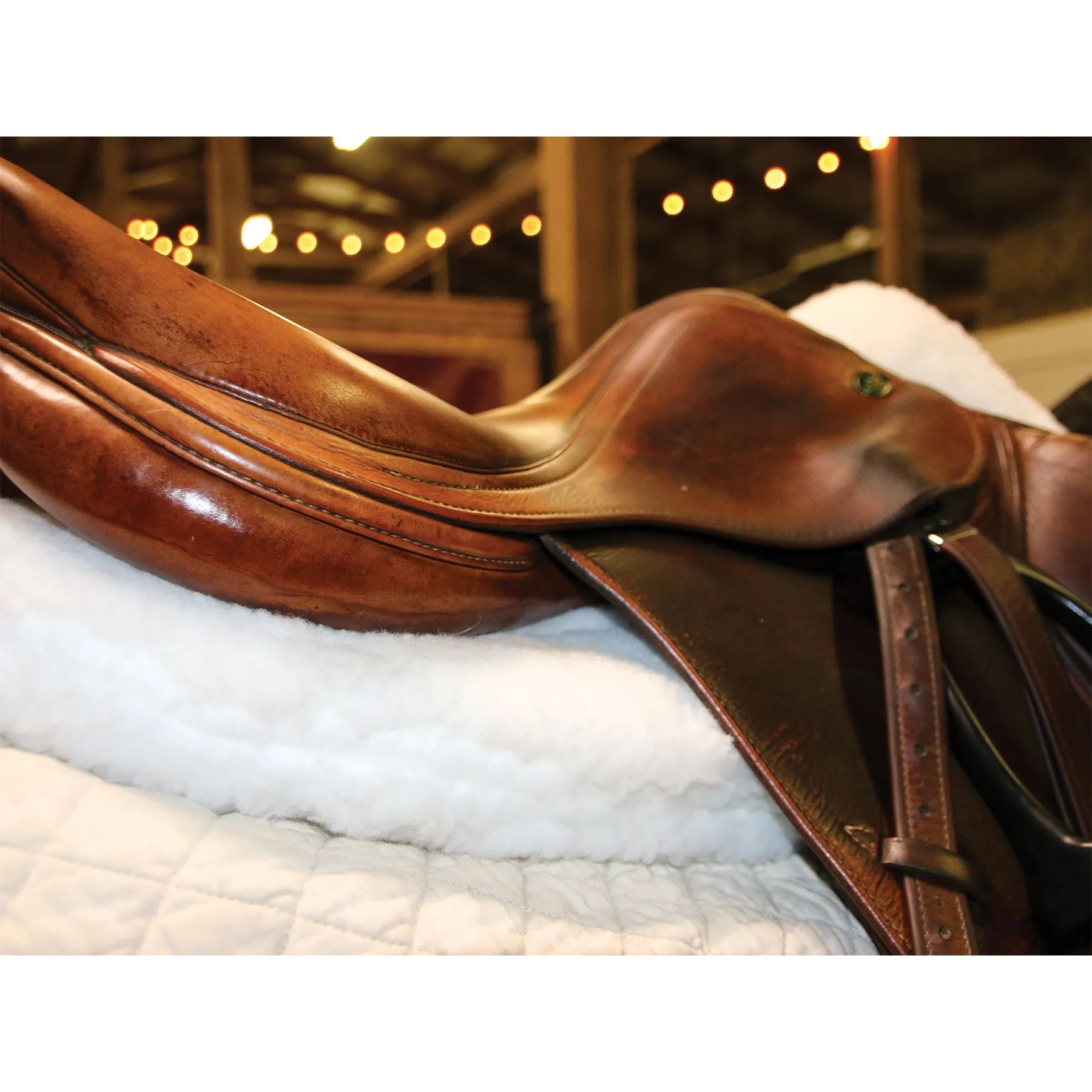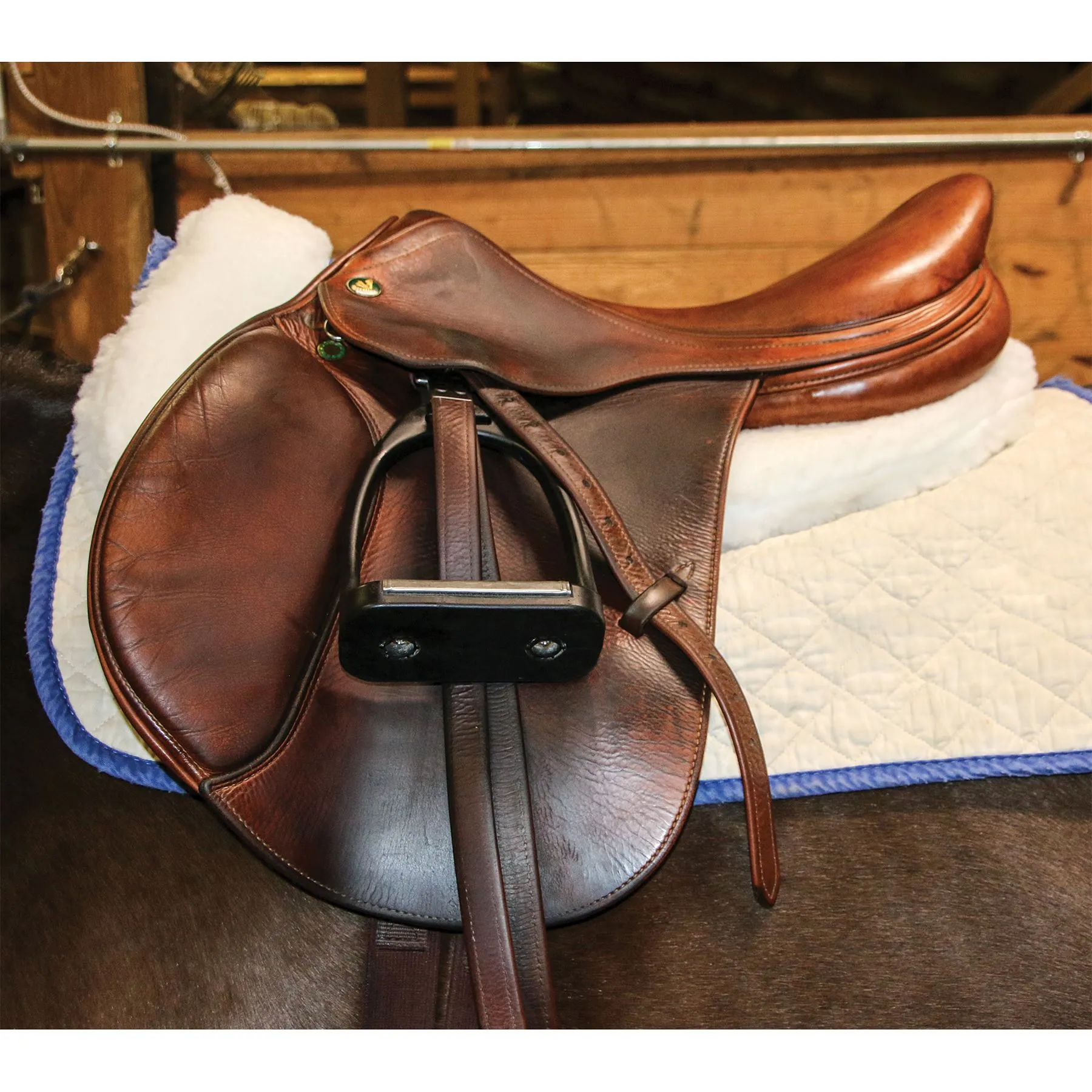 This fleece half pad has a built in memory foam core that absorbs shock and conforms to the horse’s back, providing substantial cushioning beneath the saddle to prevent and alleviate soreness. Featuring a wither cutout that relieves pressure on the spine and provides a better fit, this pad is perfect for hard to fit horses, horses with high withers, and older horses with sunken top lines. The pad’s memory foam core is sandwiched between soft fleece padding and a quilted cotton underside. The quilted cotton wicks away sweat and moisture to keep the horse’s back cool.