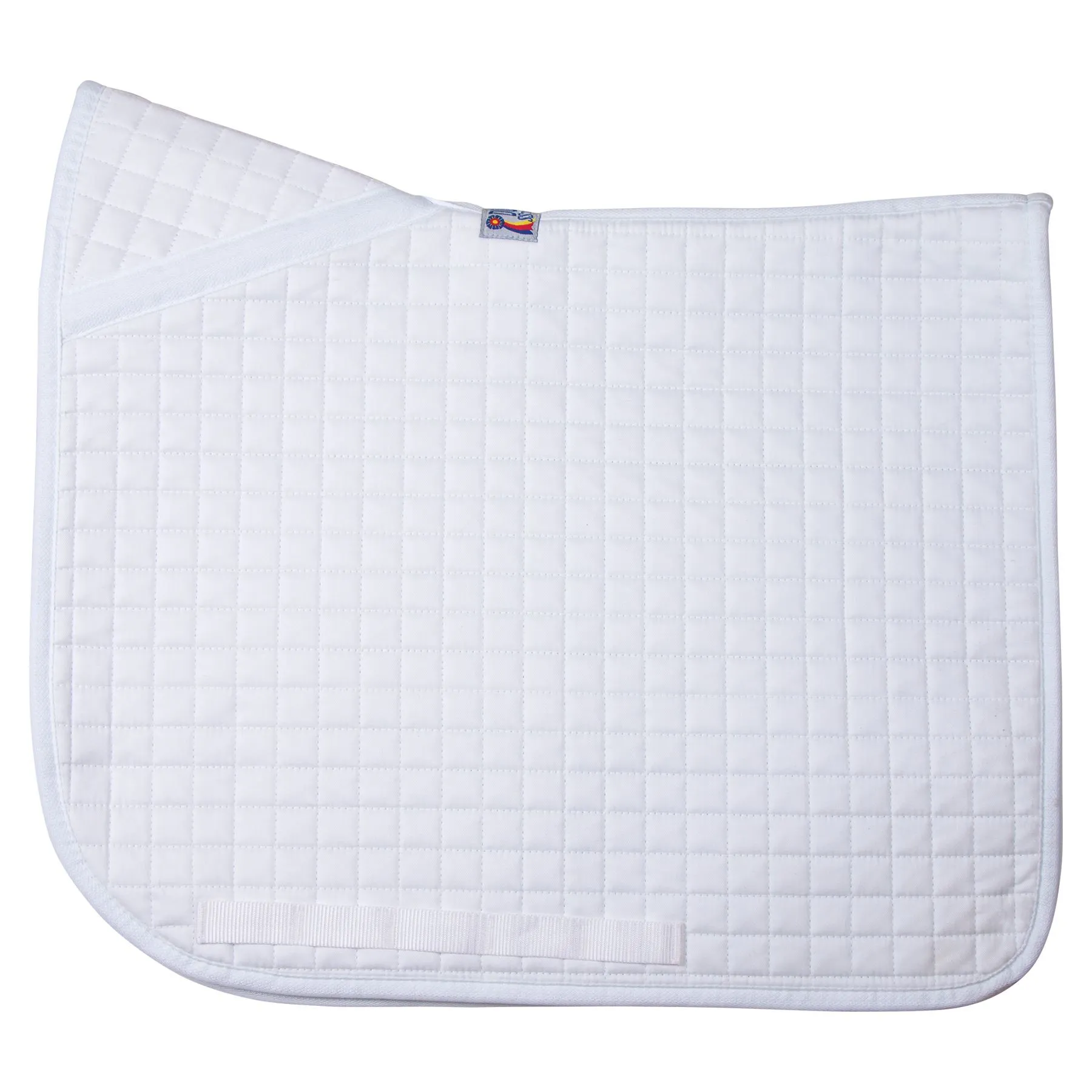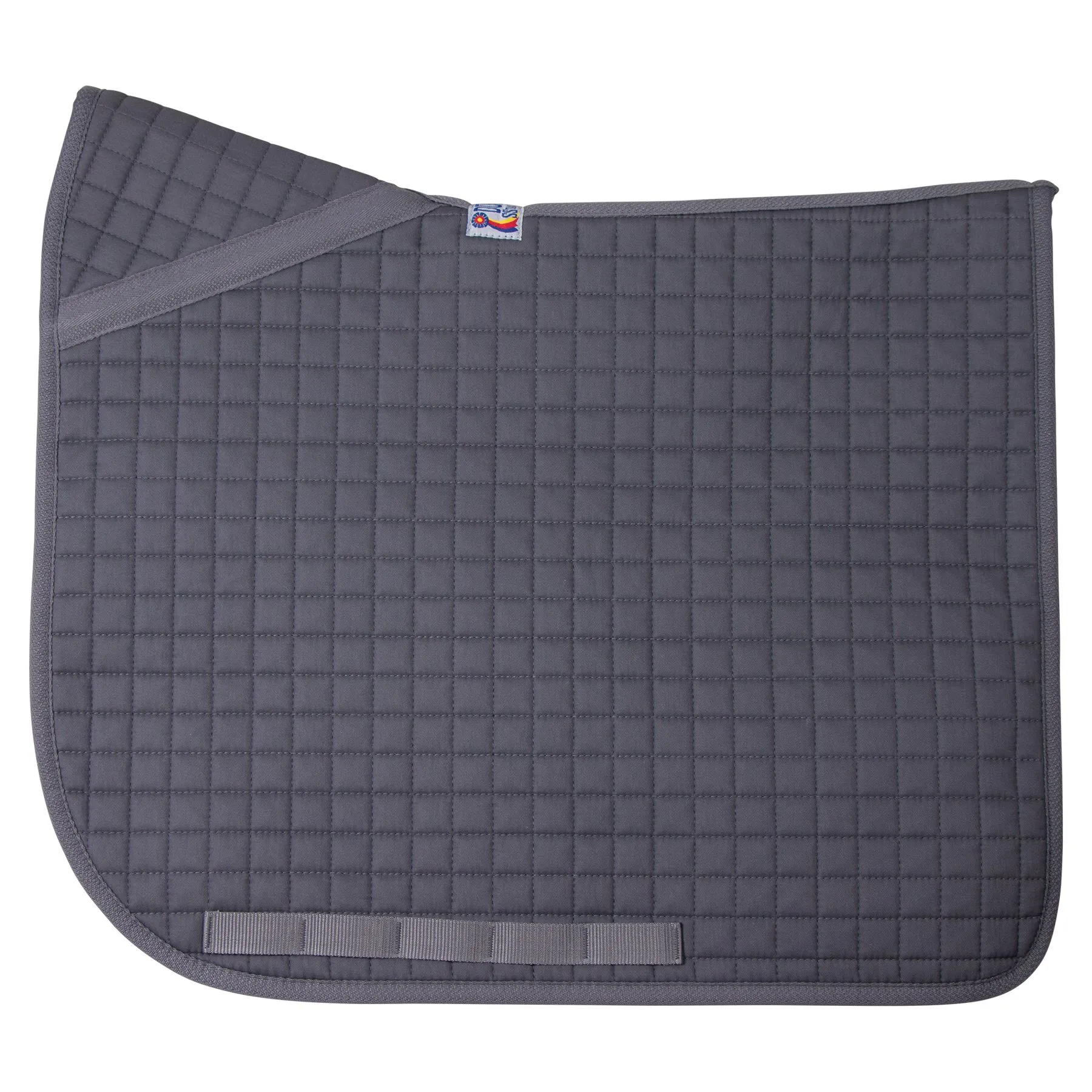 - A dressage saddle pad designed to accommodate warmbloods and heavier muscled dressage horses