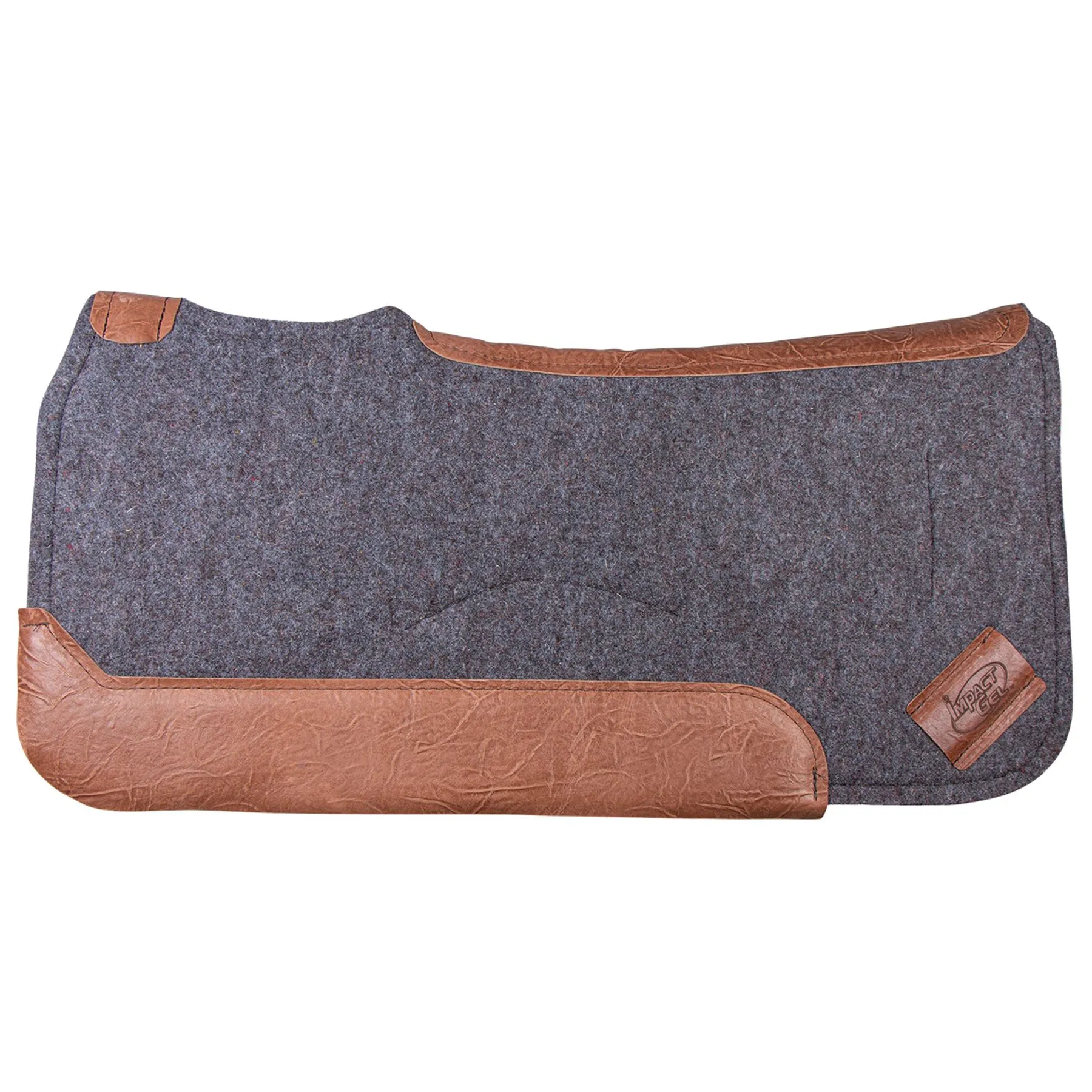This revolutionary saddle pad offers the highest level of shock absorption on the market. This gel-based pad is designed with two-piece technology, featuring a contour over the spine and a cutout at the wither for optimal comfort. The Impact Gel base layer, nestled between 1/4″ and 1/2″ layers of 70/30 wool blend felt, ensures even pressure point distribution, offering protection to your horse under most conditions. The unique wool blend also aids in efficient air circulation, keeping your horse cool during rides. Additionally, the heavy-duty wear leathers ensure durability for years, while the internal base layer system creates a non-slip, close contact technology. Each pad is handcrafted and sewn in the USA.