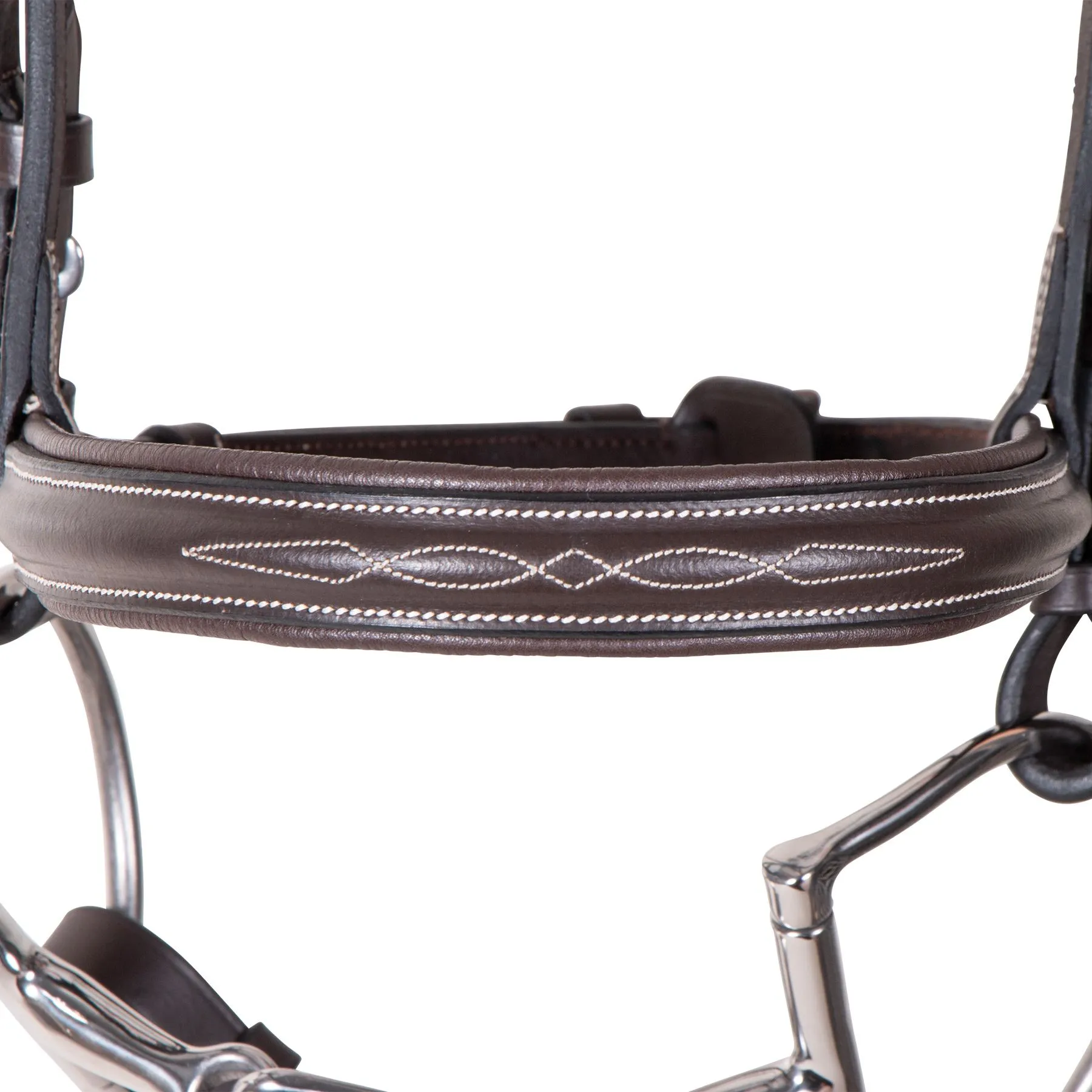 - 3/4″ wide raised, padded browband and caveson with white fancy stitching