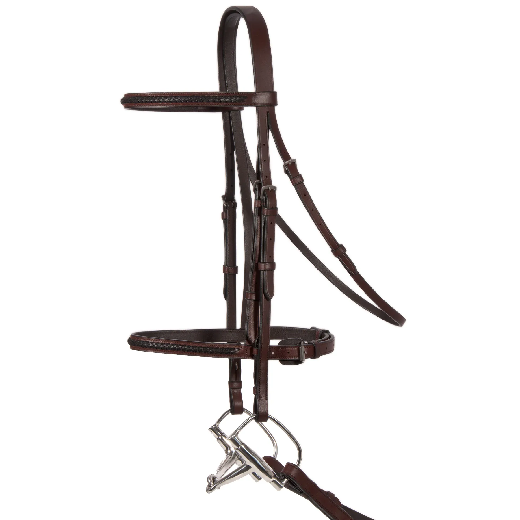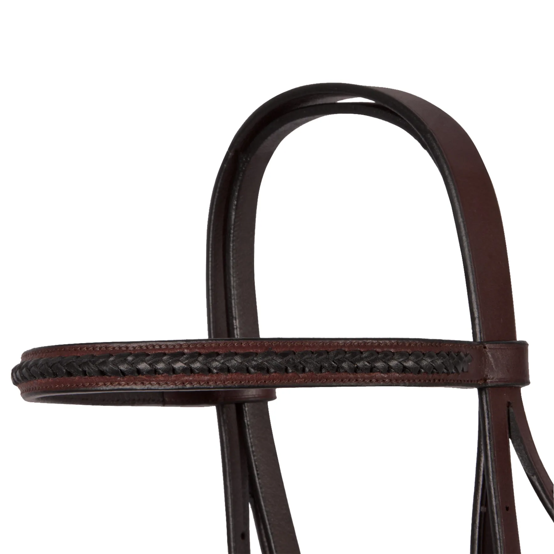 - Beautiful chestnut raised braiding on the 3/4″ browband and caveson