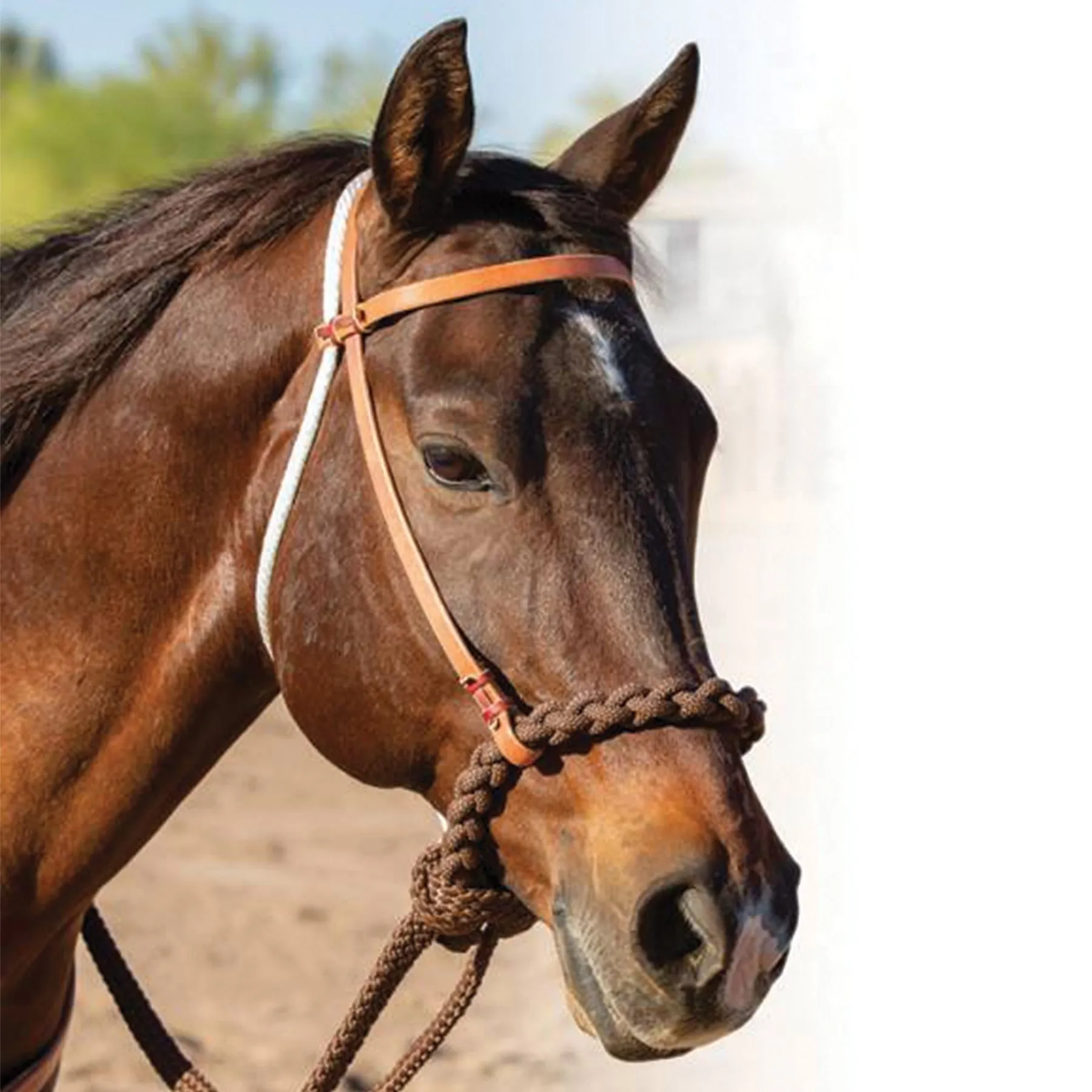 - Nylon fiador and 17 ft. chocolate poly braided reins hve a good grip and feel in any conditions